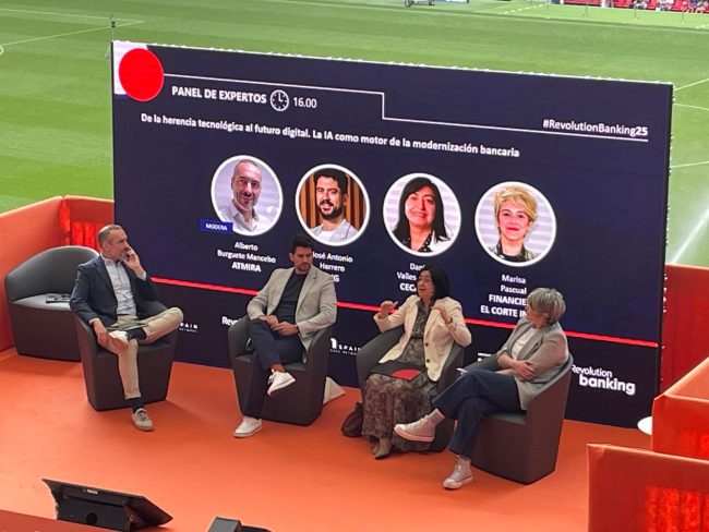Debatimos sobre la transformación «De la herencia tecnológica al futuro digital: transformación bancaria con AI» en Revolution Banking 2025.