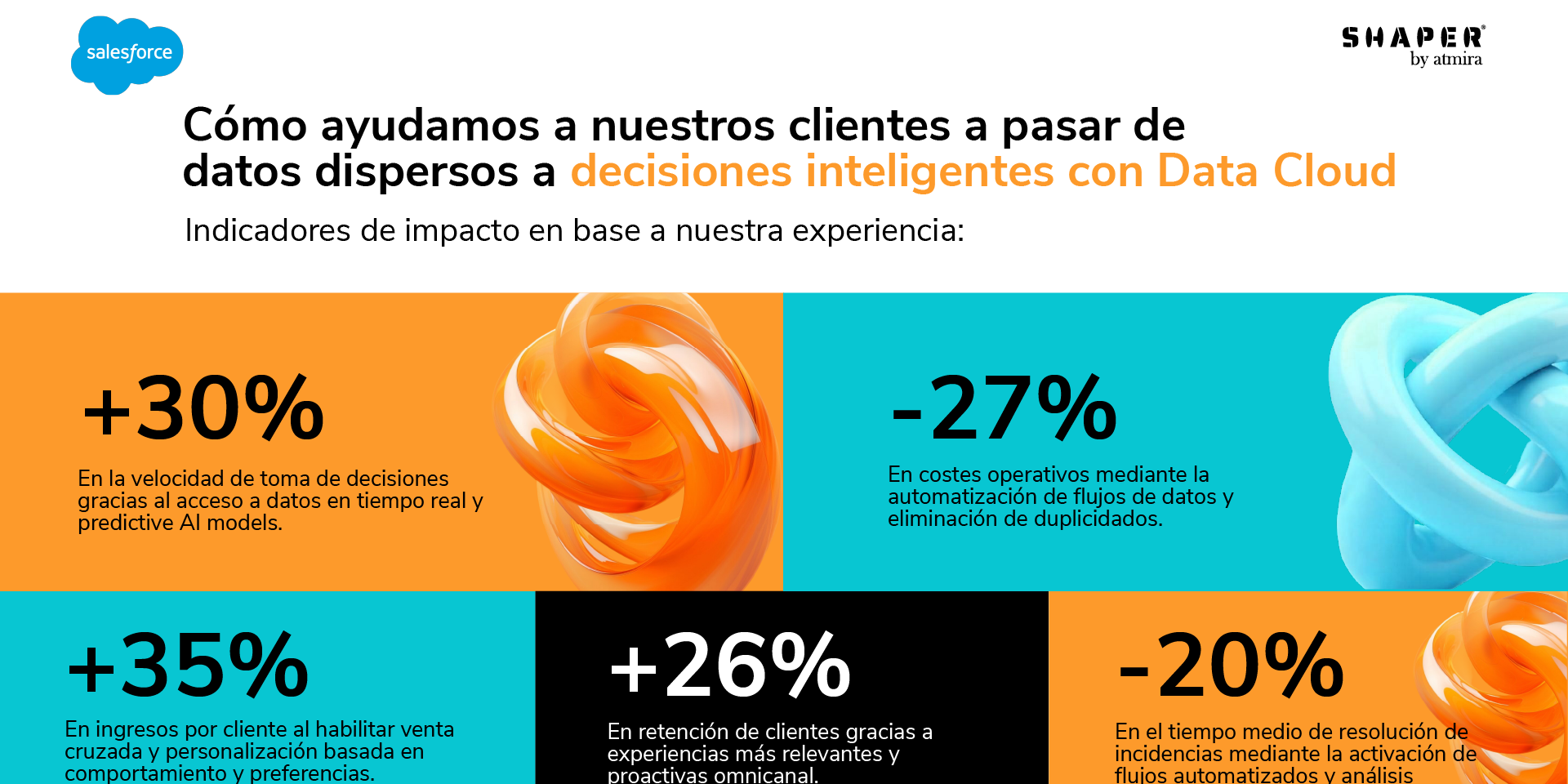 En Shaper entendemos que cada organización tiene requisitos únicos. Por eso desarrollamos estrategias de implementación personalizadas que maximizan el valor específico para cada cliente, asegurando que la inversión en Data Cloud genere resultados tangibles y sostenibles.